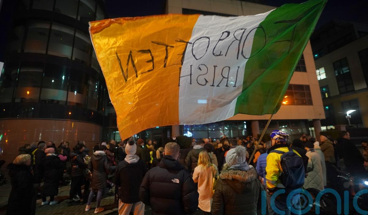 Over the weekend, hundreds of people gathered outside the building in Ballymun, with some heard chanting “get them out” and one person holding a sign saying “Ireland is full”.