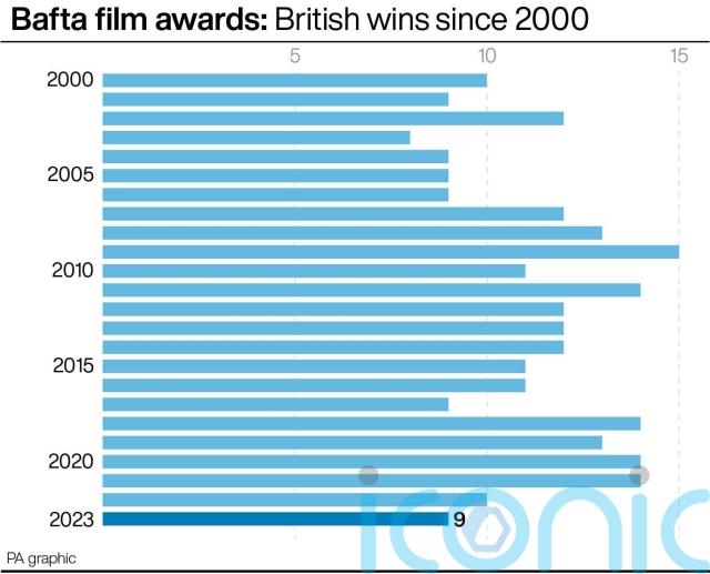Everything Everywhere All At Once had an even more disappointing night, securing only one Bafta – for best editing – out of 10 nominations.
