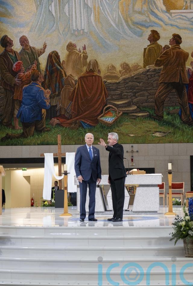 Mr Biden was given a tour of the Sanctuary of Our Lady of Knock – a Catholic pilgrimage site – by the Parish priest of Knock, Fr Richard Gibbons.
