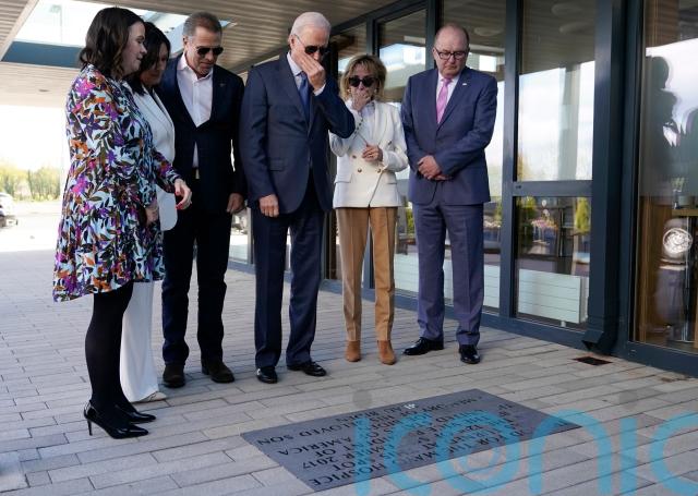 US president Joe Biden has looked a plaque in memory of his late son and met a distant cousin on the final day of his tour of Ireland.