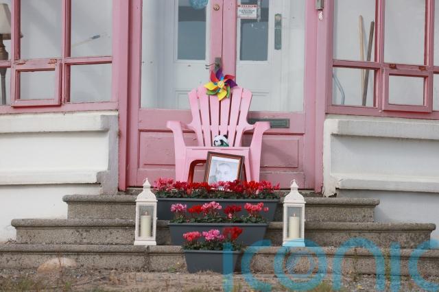 A pink chair was placed outside the pink-framed conservatory of the house, with pink flowers, candles and a photo of the singer placed at the base of the chair.