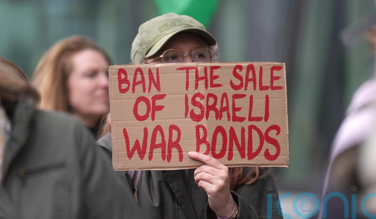 Protesters have demonstrated outside the Central Bank and called for legislation that would give Ireland the power to refuse the sale of Israeli “war bonds” over human rights concerns.