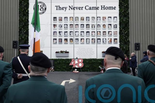 Claire Bird, the wife of the late broadcaster and supporter of the Stardust families Charlie Bird, also laid a wreath.