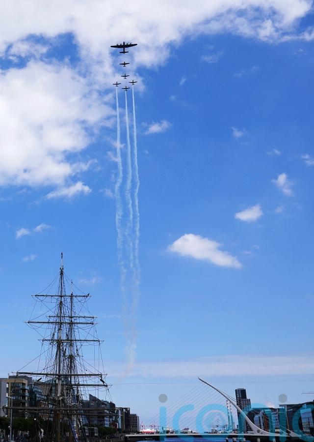 The Avro Lancaster and a Hawker Hurricane flew in formation west down the Liffey before landing at the Casement Aerodrome.
