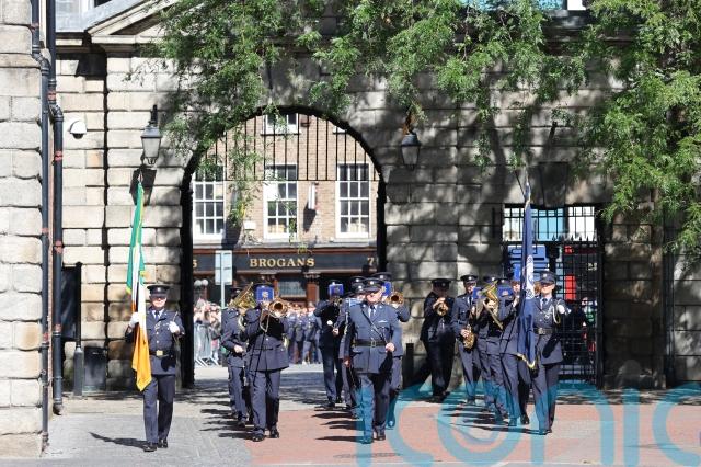 About 450 gardai retraced the steps the first Garda commissioner Micheal Staines took, along with Ireland’s newly formed Civil Guard, as they marched into Dublin Castle, the headquarter of British rule, for the handover of duties on August 17, 1922.