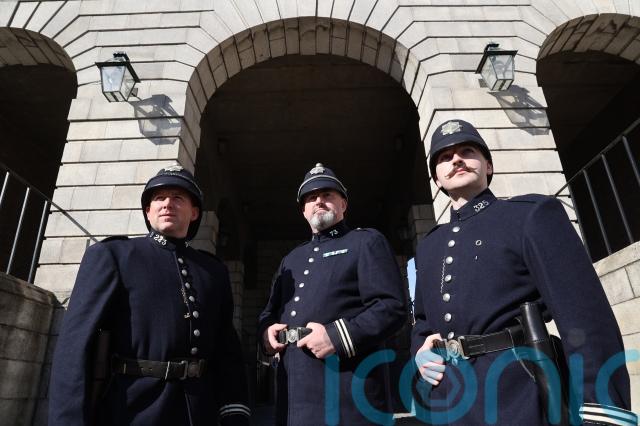 During the parade they replicated a photograph, taken on August 17, 1922 of Mr Staines and the force as they arrived at Dublin Castle through the Palace Street Gate.