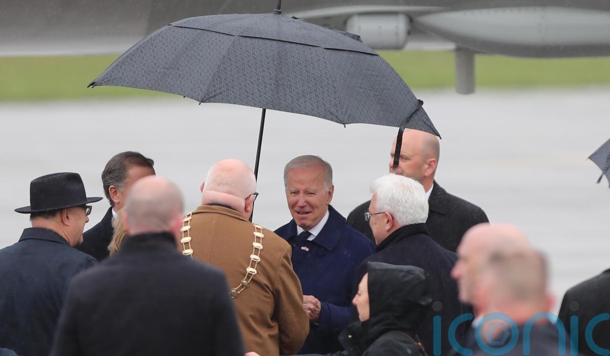 US president Joe Biden was shielded by umbrellas as he touched down at Dublin Airport ahead of his three-day stay in the Republic of Ireland.
