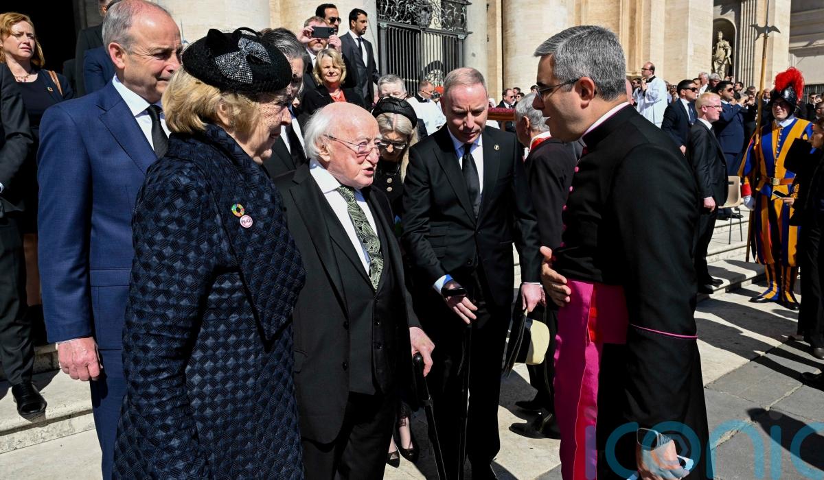 President Michael D Higgins led the Irish delegation by attending the mass for the late pontiff with his wife Sabina Higgins, having also viewed Francis’s remains during his lying in state on Friday.