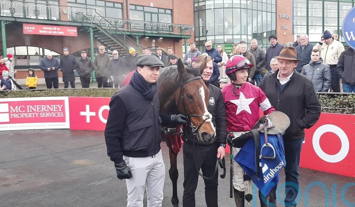 Off the track for 612 days, the seven-year-old was sent off the 1-4 favourite for the McInerney Beginners Chase in the hands of Daryl Jacob and the combination barely broke sweat as they sauntered to the front and stayed there for the duration of the two-mile-five-furlong contest to record a bloodless 15-lengh victory.