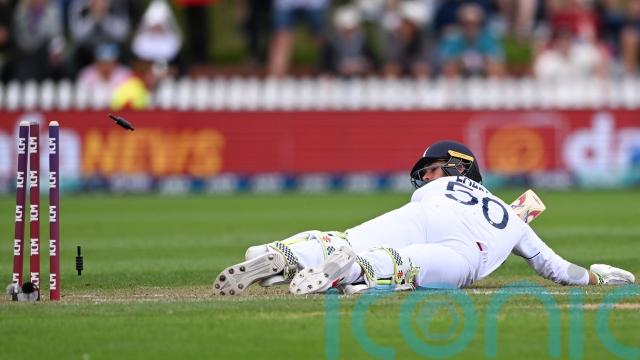 His end came when he tried to flog a difficult ball from Neil Wagner over the infield and slogged to mid-off. Ben Foakes managed an even less graceful exit, stumped for a duck after toppling face first while facing Michael Bracewell’s off-breaks.