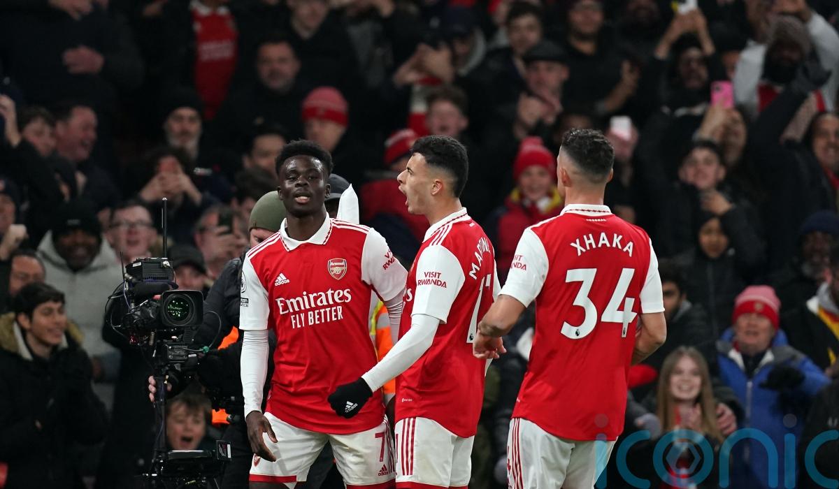 Captain Martin Odegaard added a third before Martinelli tapped in to put the gloss on the win and leave Arsenal in a strong position as they pursue a first title in 19 years.