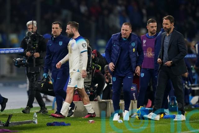 Luke Shaw was part of the group despite being suspended for the Ukraine match having been sent off for two bookings in quick succession in Italy.