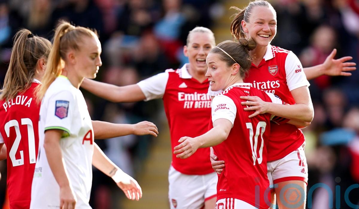 Stina Blackstenius got the rout started early before Foord, captain Kim Little and Frida Maanum all got in on the act to hand Vicky Jepson’s struggling Spurs a heavy loss despite Bethany England’s first-half penalty.