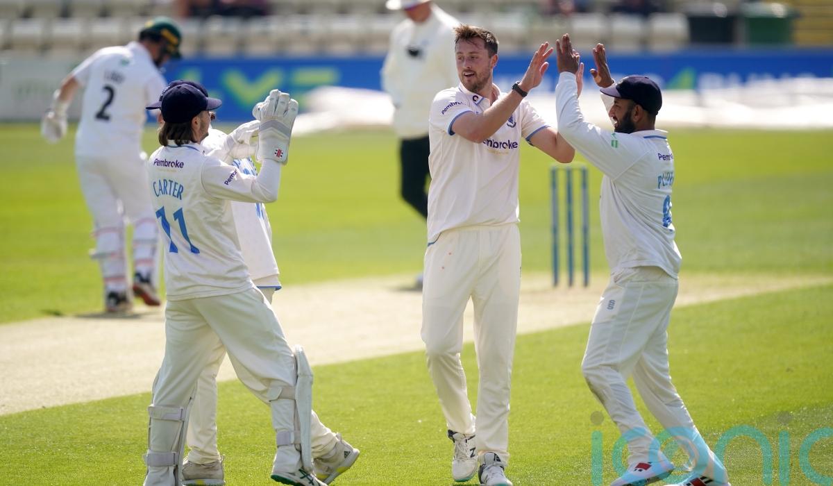 Last man Ben Gibbon lasted just two balls as he was pinned lbw to become Robinson’s seventh victim, with Worcestershire losing their final three wickets inside 13 deliveries.