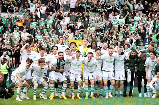 Celtic clinched their second successive Scottish Premiership title under Ange Postecoglou with a 2-0 win over 10-man Hearts.
