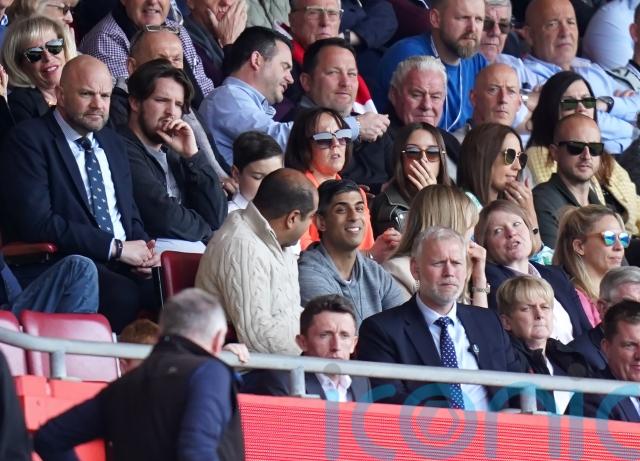 Pockets of empty red seats suggested plenty of Saints fans were already resigned to the club’s fate, albeit the reduced crowd was boosted slightly by the presence of Southampton-born politician Sunak.