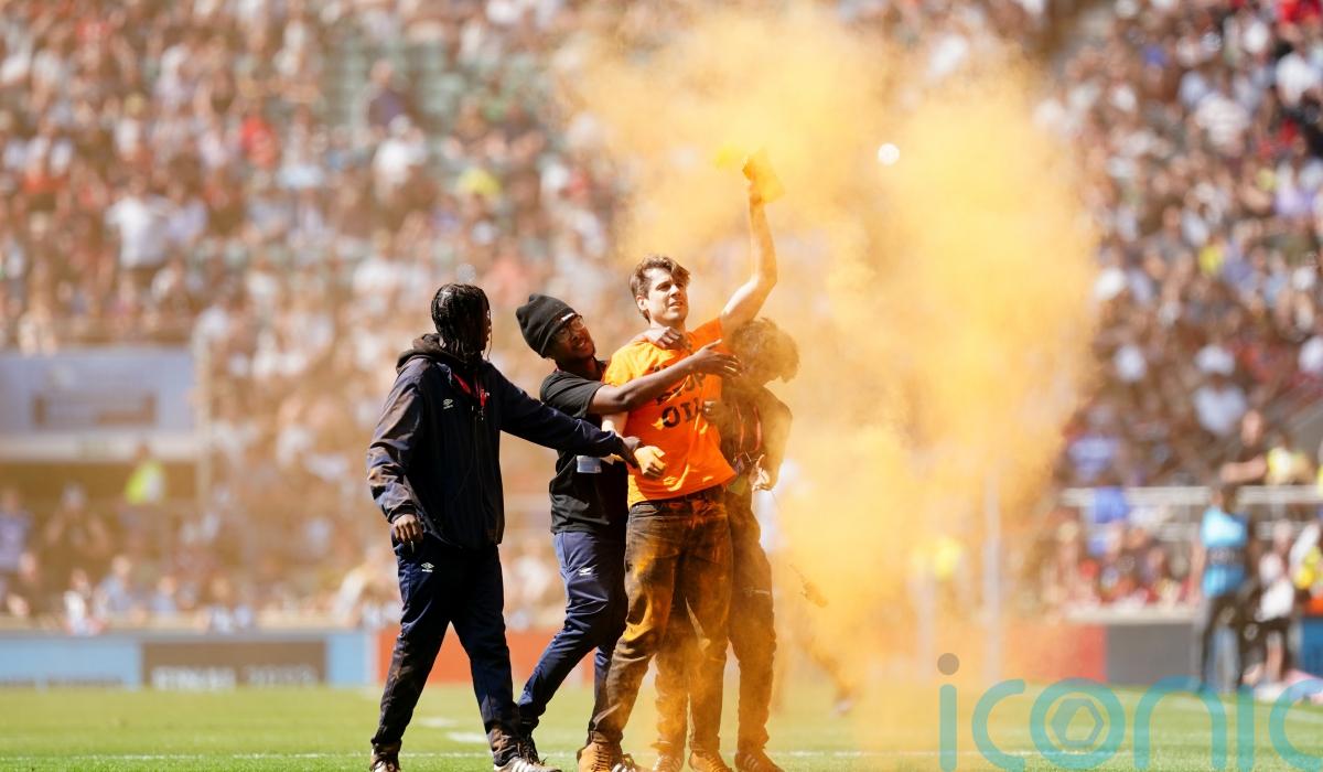 Just Stop Oil protesters forced a stoppage in play during Saturday’s Gallagher Premiership final at Twickenham.