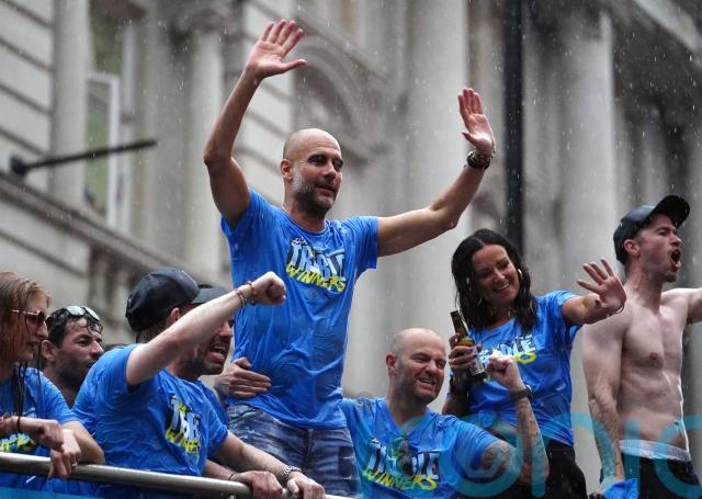 “We had to be the best parade with this rain, otherwise it is not Manchester,” Guardiola said to the delight of the waiting crowd.
