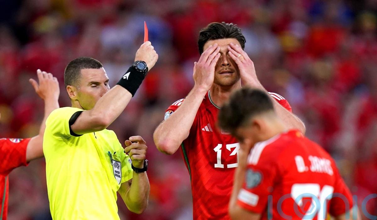 But Moore’s red card – that appeared harsh on first glance – confirmed Armenia’s first win in 10 games on a crazy night at Cardiff City Stadium.