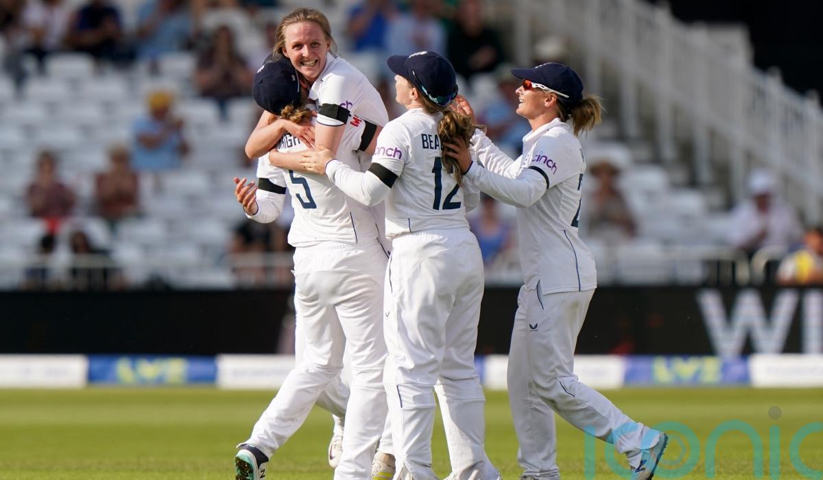 Cross atoned for dropping Phoebe Litchfield minutes into the fourth morning by uprooting the off-stump of the Australia opener, out leaving for the second time in the match on her Test bow.