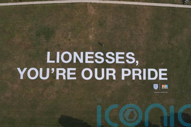 The message, large enough to be visible to the England party as their plane ascends over west London, reads “Lionesses, you’re our pride,” and is tagged with thousands of smaller messages of support submitted by fans across the country.