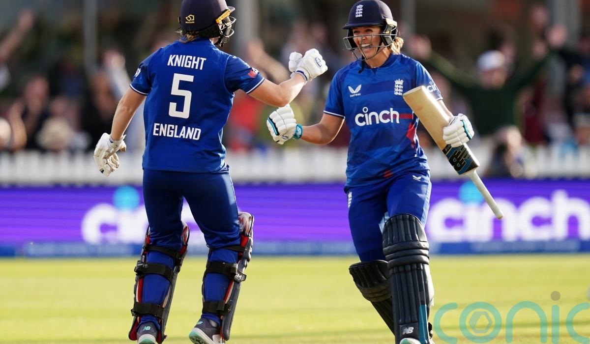 Australia’s 263 for eight was overhauled with 11 balls to spare, thanks largely to captain Heather Knight’s unbeaten 75 from 86 balls and a brilliant late cameo from Kate Cross, and their fate would have been worse had England not dropped four catches and shelled a stumping opportunity.