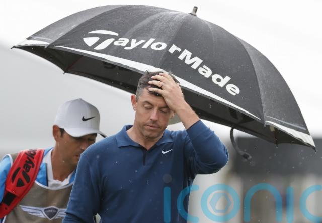Saturday’s tee times have been brought forward by several hours due to the forecast for afternoon thunderstorms, with winds gusting up to 40mph predicted for Sunday.