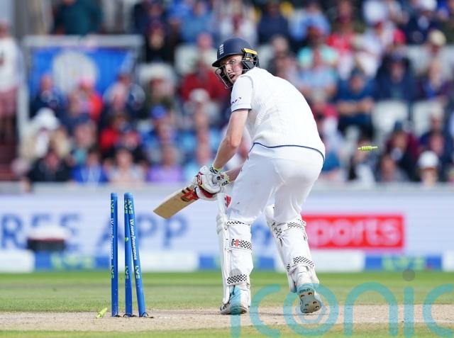 England took the lead in fitting style, Crawley stepping inside the line and blazing Marsh high over wide long-on for six. The quickest double hundred in Ashes history was beckoning when Crawley came to an abrupt end, dragging a short ball from Green back into his stumps.