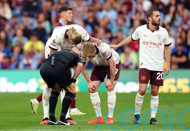 Pep Guardiola confirmed Kevin De Bruyne will be out for “a few weeks” after being forced out of Manchester City’s opening-day win at Burnley.
