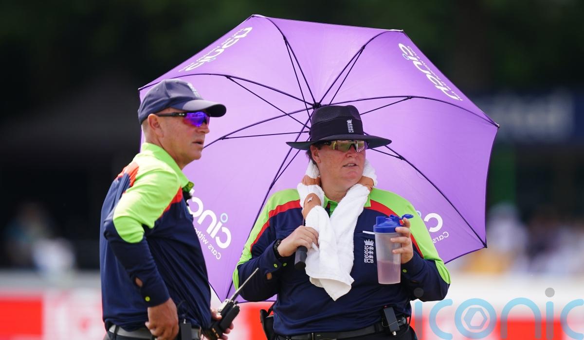 Congratulations to Sue Redfern, who today has become the first female umpire to stand in a @CountyChamp match in the UK.