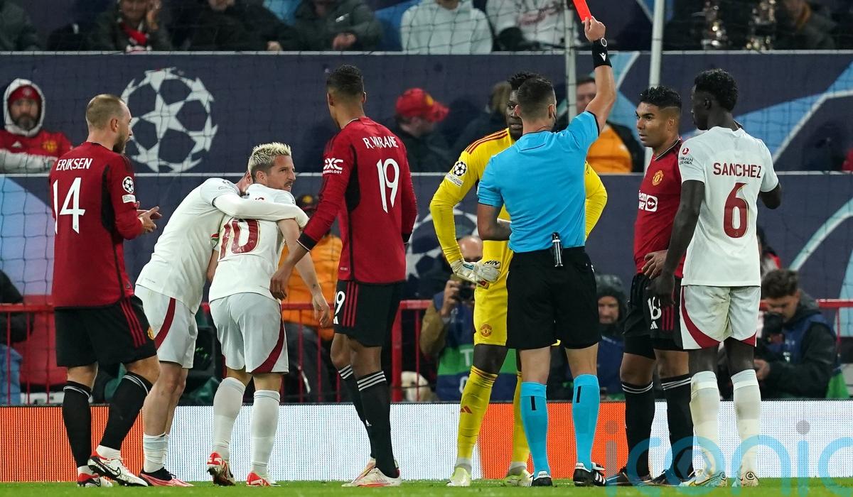 Kerem Akturkoglu equalised and summer signing Andre Onana’s atrocious pass out straight to Dries Mertens led to a poor Casemiro recovery challenge that saw the Brazil midfielder sent off and a penalty awarded.