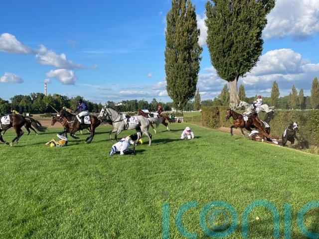 Patrick Mullins had gone over to ride last year’s winner Mr Spex – but he was an early casualty at the famous Taxis fence, while Peter Maher’s two runners, Jet Fighter and Alpha Male, ridden by Sean O’Keeffe and Petr Tuma respectively, were both out of luck.