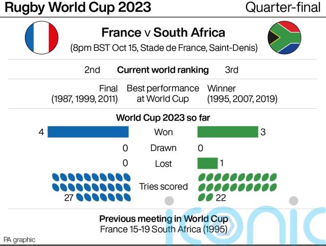 The second of the weekend’s two box-office Paris quarter-finals pits the expectant hosts against the defending champions. Whoever prevails on Sunday will view it as a huge obstacle overcome in their quest to win the tournament. France will have the backing of a frenzied home support sensing an opportunity for their team to claim the Webb Ellis Cup for the first time. Les Bleus have not lost on home soil since Scotland defeated them in Paris behind closed doors in a Six Nations match two-and-a-half years ago. The Springboks – chasing World Cup glory for a fourth time – entered the tournament in scintillating form and began with an impressively comfortable win over Scotland before their momentum was halted slightly by a narrow loss to Ireland in their penultimate pool match. The contrast of French flair and the ferocious physicality of South Africa promises to deliver an epic contest to conclude the weekend spectacular.