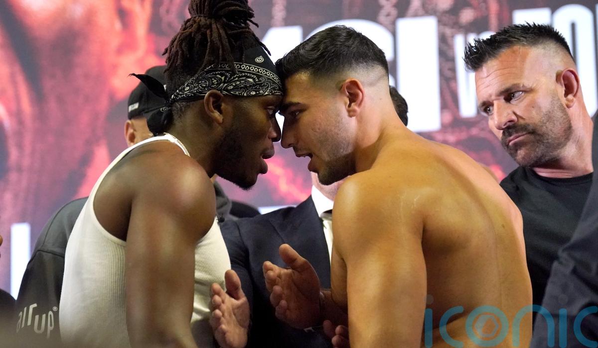 Tommy Fury promised an “early night” in his showdown against KSI at a chaotic press conference that saw the pair sling insults at one another while separated by perspex glass inside a cage.