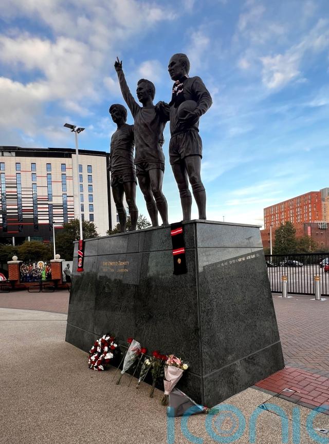 A wreath was put in the centre circle as a minute’s applause was held before kick-off while another wreath was laid at the base of the statue of Charlton, George Best and Denis Law in front of Old Trafford.