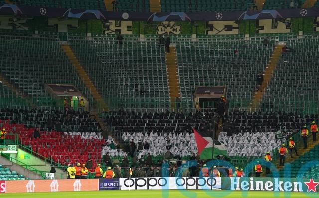 Thousands of Celtic supporters defied the club and displayed Palestine flags ahead of their Champions League clash with Atletico Madrid.