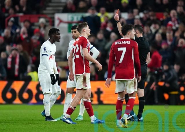 Forest’s hopes of a comeback were then given a boost with 20 minutes remaining after Yves Bissouma was shown a straight red card for a high challenge on Yates following another VAR decision.