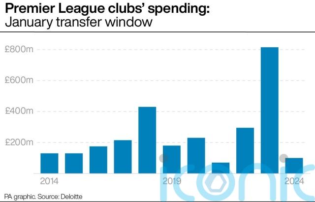 The slowdown has been attributed to the threat of sanctions under the league’s profit and sustainability rules, with the Toffees already docked 10 points this season – though spending over the full season still hit £2.4bn, second only to last season’s £2.7bn.