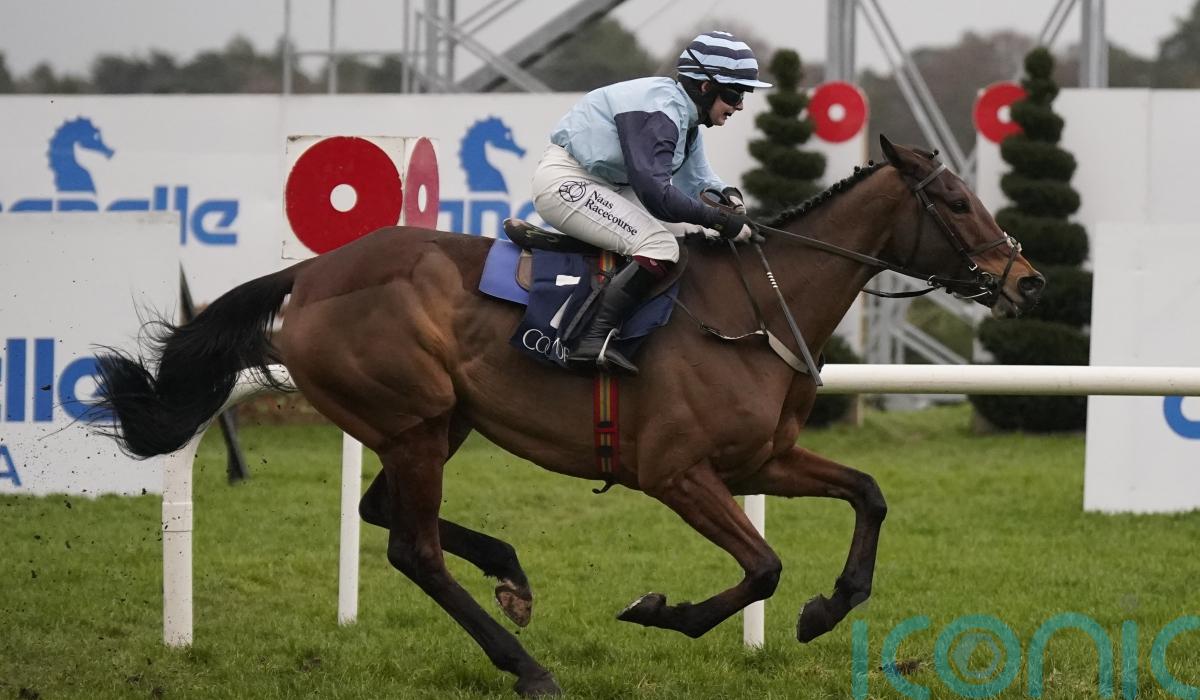 Stuart Crawford’s 20-1 shot Brucio came home best of all to land the Irish Stallion Farms EBF Paddy Mullins Mares Handicap Hurdle.