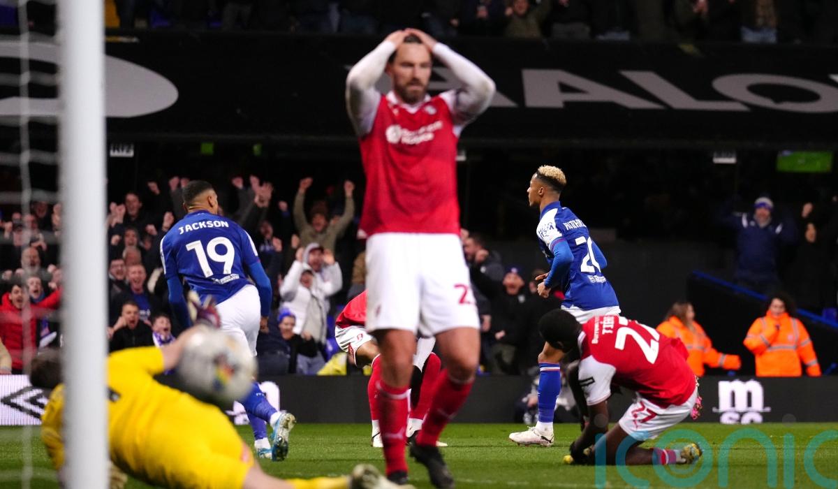 Ipswich defender Harry Clarke had a chance to clear from Town’s penalty box but Sam Clucas stuck out a foot and toed the ball into the path of the Millers striker who guided his shot beyond the reach of goalkeeper Vaclav Hladky.