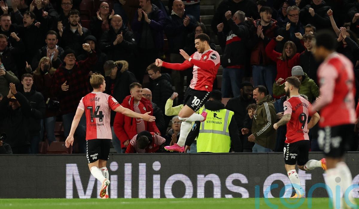 It woke Saints up and after having a penalty of their own turned down, they went ahead in the 18th minute. Walker-Peters struck from 25 yards before it bounced off Adams’ back to beat Bradley Collins, with both claiming the goal.