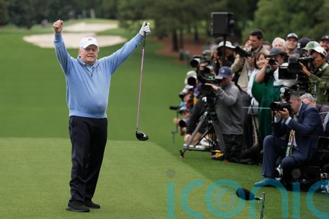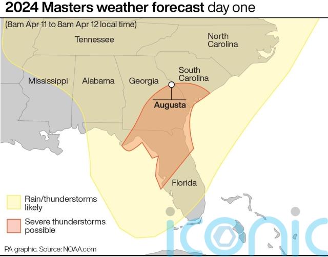 Overnight rain and the threat of thunderstorms saw the start of play pushed back from 8am to 1030am, with honorary starters Nicklaus, Gary Player and Tom Watson kicking off proceedings 20 minutes earlier by hitting tee shots on the first before retiring to the clubhouse.