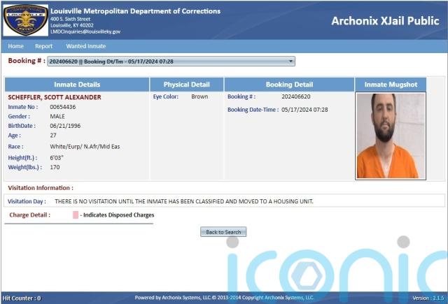 A mugshot of Scheffler was later released by the Louisville Metropolitan Department of Corrections, which later showed he had been released after an hour and 12 minutes.