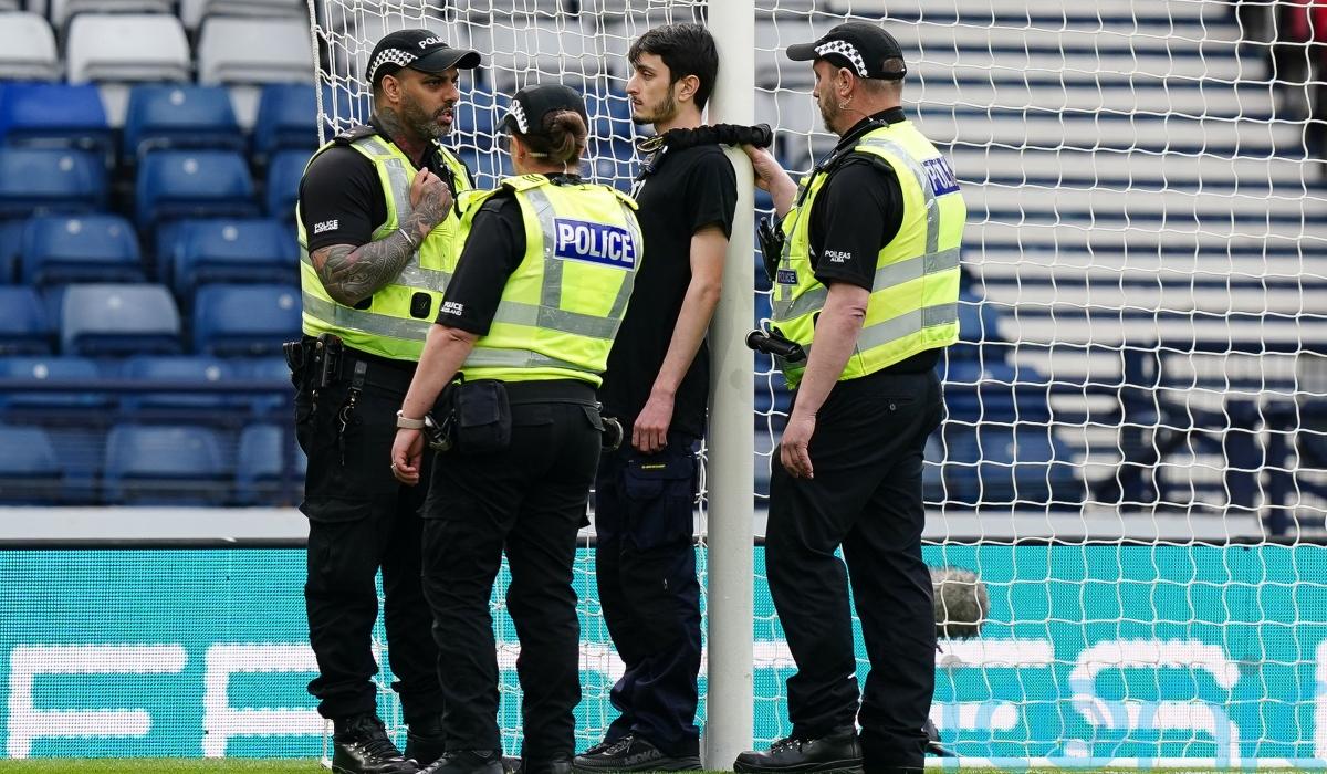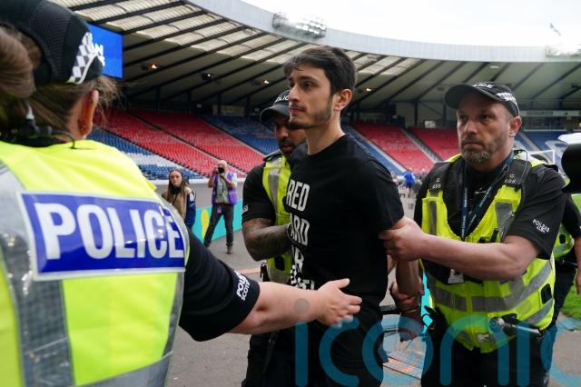 Protester ties themselves to Hampden goalpost to delay Scotland-Israel qualifier