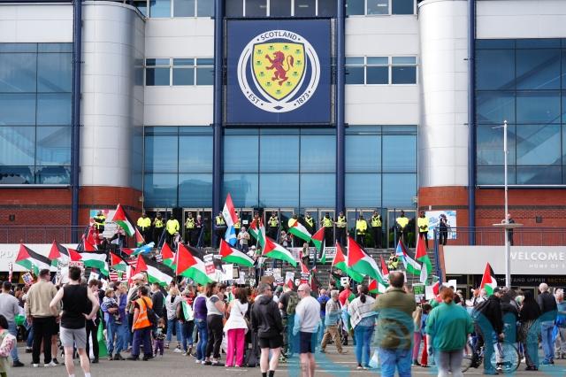 Campaigners and charities including Show Israel the Red Card and Scottish Friends of Palestine held a protest outside the stadium on Friday calling for an immediate ceasefire.