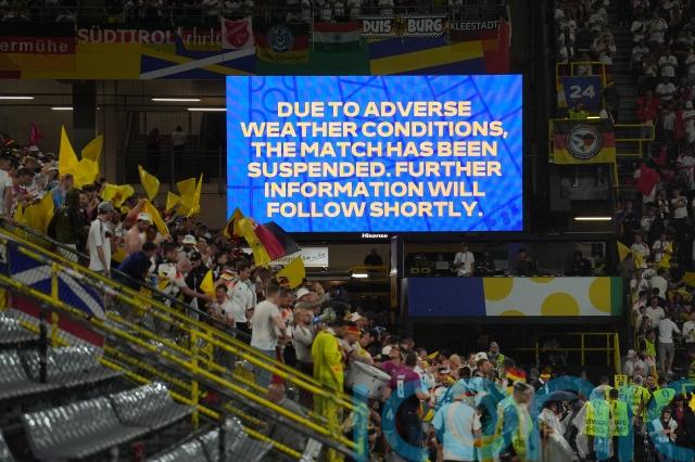 English referee Michael Oliver suspended the action after 35 minutes due to thunder and lightning at the Westfalenstadion, with the delay lasting 24 minutes.