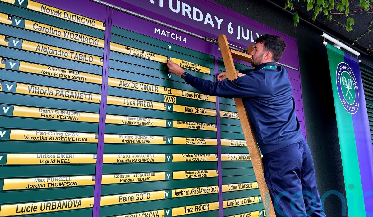 Wet weather greeted spectators at the All England Club on Saturday morning and not long after play did get under way it was revealed that Emma Raducanu had pulled out of her mixed doubles tie with Murray.