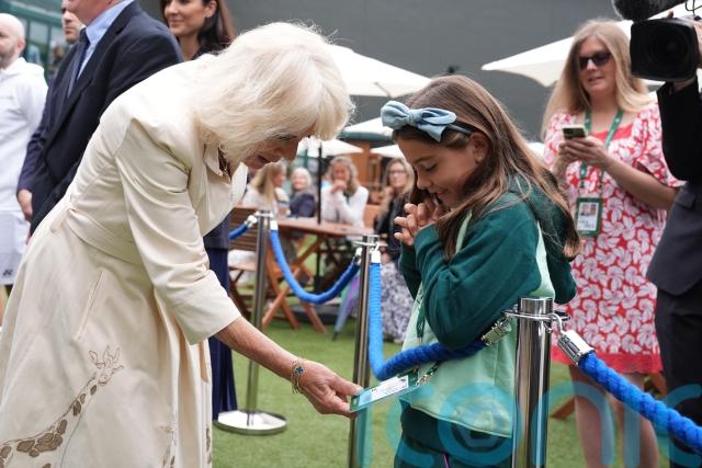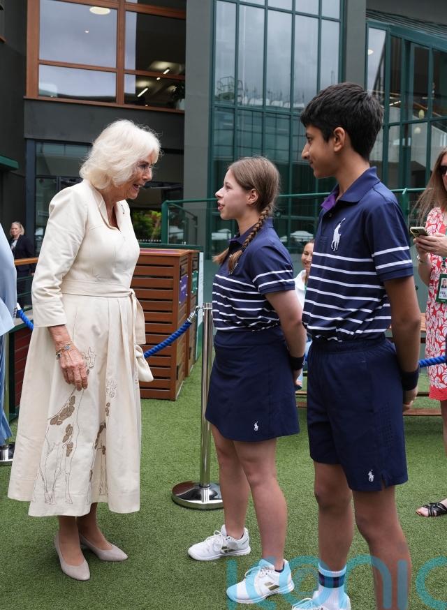 Camilla was introduced to the welcome line-up by Deborah Jevans, chairwoman of the All England club, before heading to the royal box on Centre Court.