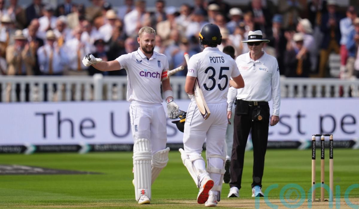 On a pitch that had few gremlins, England’s fast bowlers hunted as a pack and there were two wickets apiece for the metronomic pair of Chris Woakes and Matthew Potts, with Olly Stone bagging two in an over on his return to Test cricket.