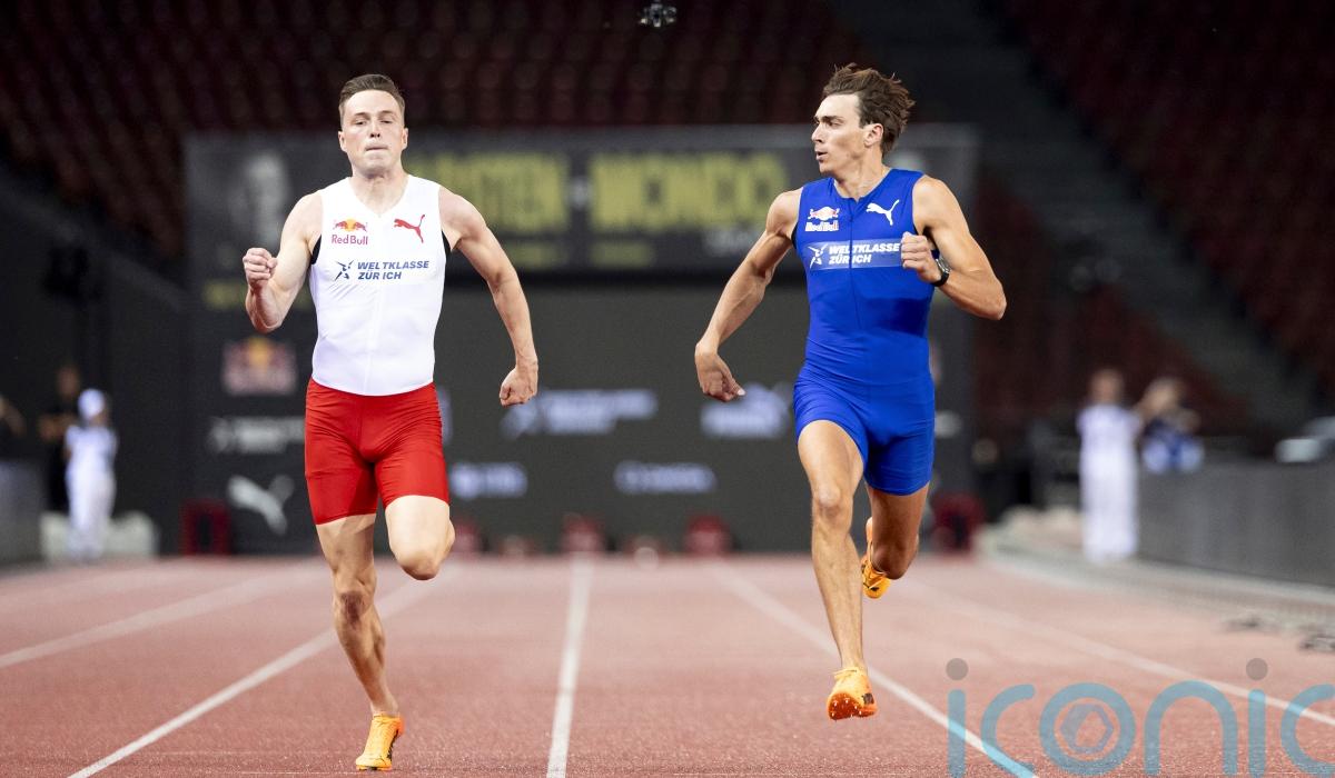 Armand Duplantis beat close friend Karsten Warholm in an exhibition 100 metre sprint at the Letzigrund Stadium in Zurich.
